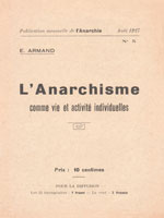 Armand, E. — L’Anarchisme comme vie et activité individuelles. — Paris : Anarchie, 1927. — X p. — (Publication mensuelle de L’Anarchie ; 5).